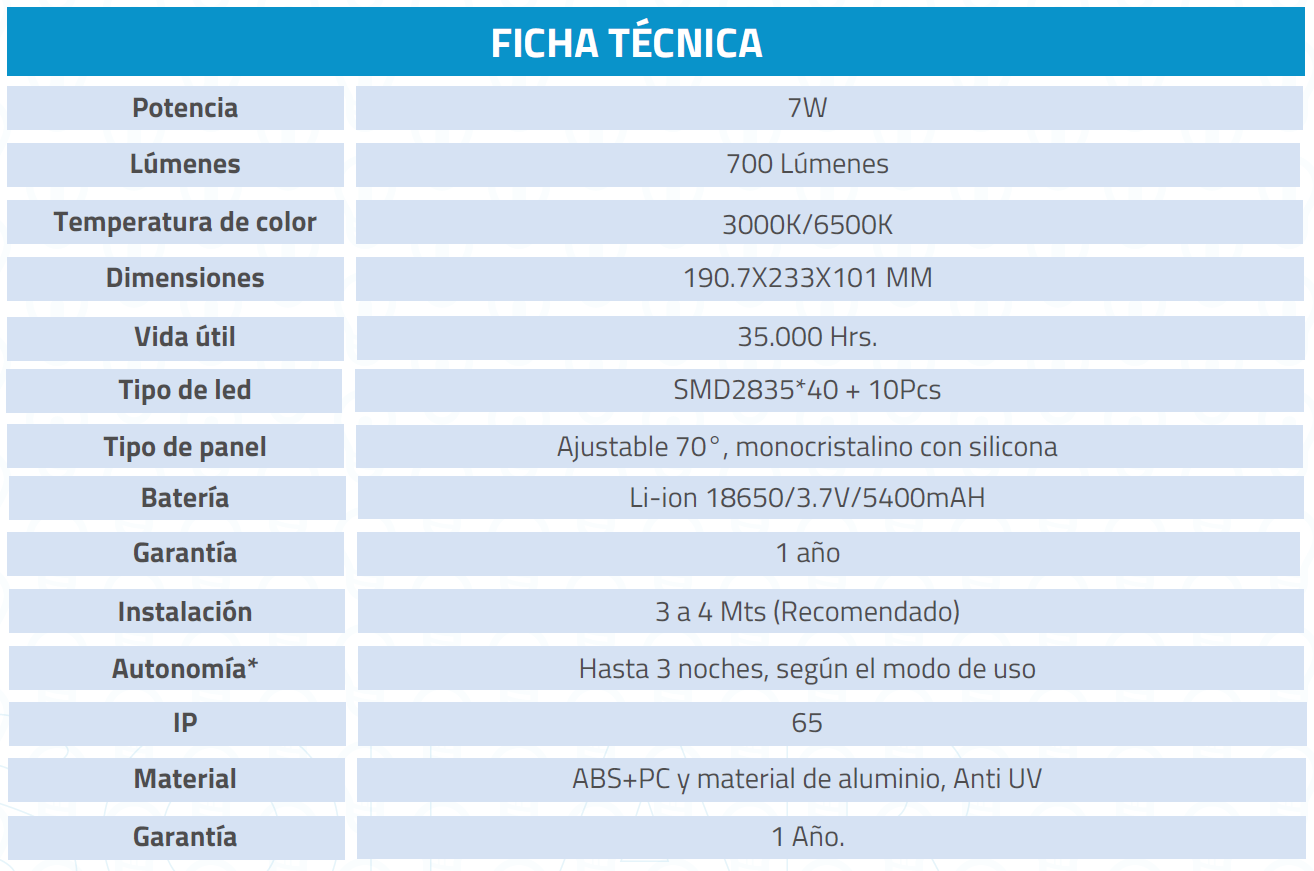 Luminaria de pared solar de 7W con sensor de movimiento, ideal para pasillos, patios y estacionamientos. Su doble función permite utilizarla tanto para iluminación decorativa como para señalización, ofreciendo versatilidad en su uso.