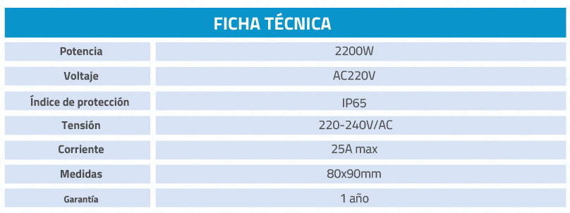 La Fotocelda Azul 25A es una solución eficiente y duradera para iluminación automática en entornos residenciales, comerciales o industriales; ofrece un consumo energético optimizado, iluminación constante y confiable, y cuenta con especificaciones técnicas como 2200W de potencia, voltaje AC220V, corriente máxima de 25A, grado de protección IP65 y medidas Ø80x90mm, con garantía de 1 año.