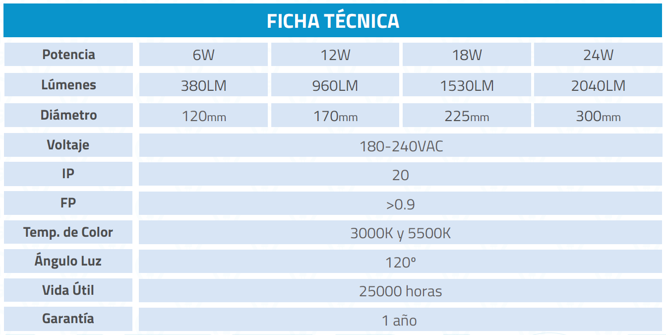Plafón redondo sobrepuesto disponible en opciones de luz fría o cálida. Con diversas potencias, este panel es ideal para reemplazar instalaciones con ampolletas, proporcionando una iluminación agradable y no invasiva para distintos espacios. Perfecto para interiores de viviendas.