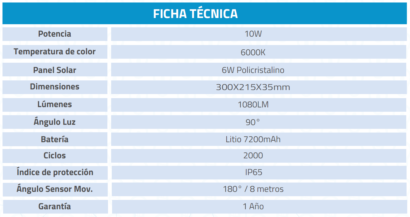 Proyector Solar LED ALL IN ONE, con todos los componentes integrados en el cuerpo de la luminaria. Su diseño compacto y opciones de instalación versátiles permiten su uso en accesos, entradas de casas, patios, portones y más. Incluye dos sensores de movimiento en los laterales para maximizar la eficiencia de la batería.