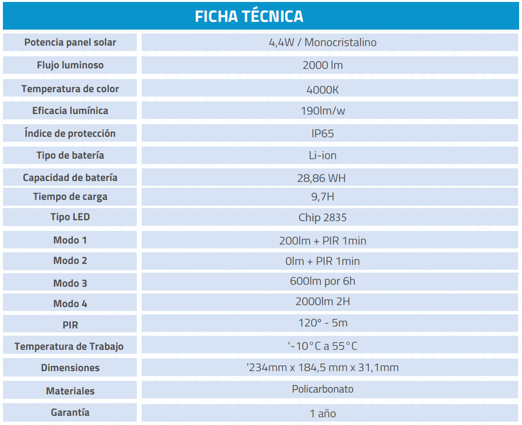 Luminaria solar tipo proyector de área con panel fotovoltaico extendible hasta 5 metros, permitiendo su uso bajo techo.