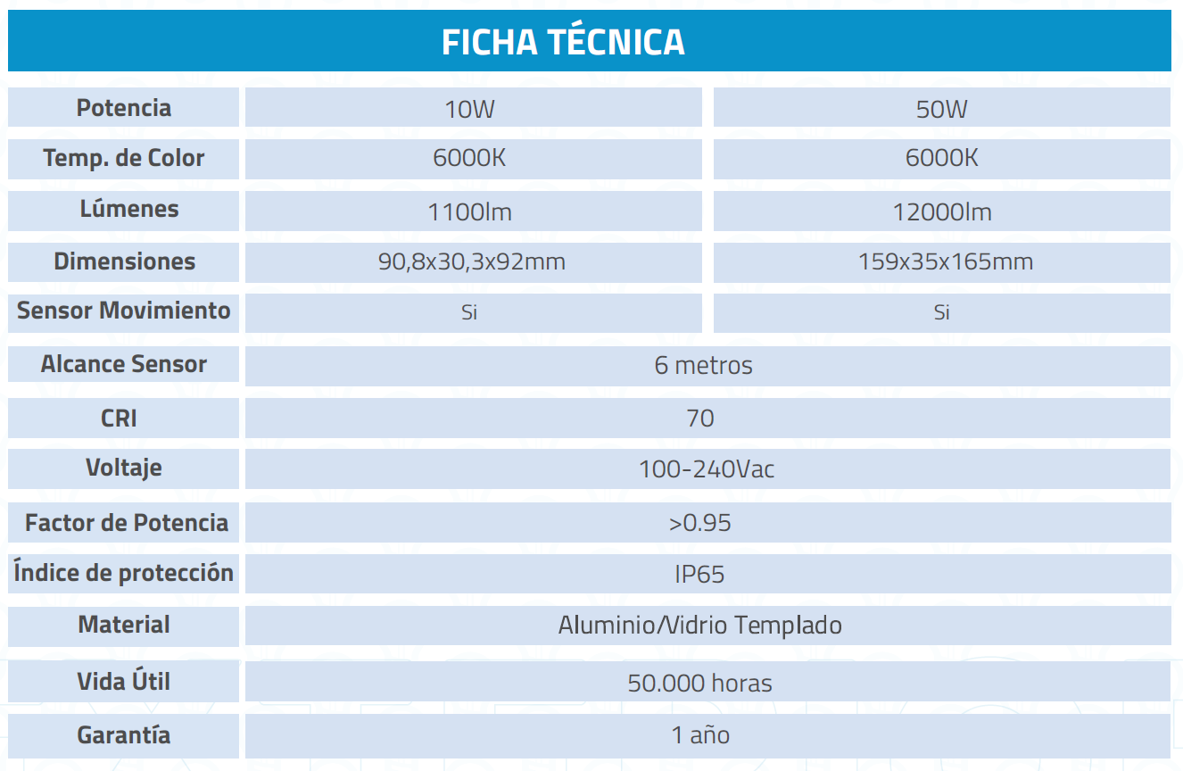 Foco proyector de área con sensor de movimiento, fabricado en aluminio y óptica de vidrio. Adecuado para uso en interiores y exteriores, con protección IP65 que resiste las inclemencias del tiempo. Su diseño compacto y fácil instalación lo hace ideal para construcciones, caminos rurales, patios, bodegas y otros espacios que requieran iluminación potente.